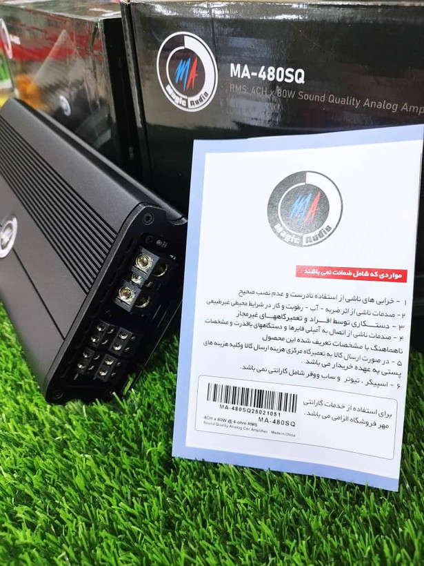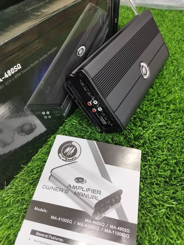 آمپلی فایر 4 کانال مجیک مدل MA-480SQ، یک آمپلی فایر کلاس A/B است که دارای 4 کانال بوده و توان اسمی 80 وات در 4 اهم و 120 وات در 2 اهم را ارائه میدهد. همچنین، در حالت پل (Bridge) توان 240 وات را ارائه میکند. این آمپلی فایر دارای حساسیت سیگنال به نویز 96 دسیبل، بازه فرکانسی 5 هرتز تا 50 کیلوهرتز، فیلتر پایین گذر (LPF) و فیلتر بالا گذر (HPF) است. همچنین، قابلیت پل زنی را نیز داراست.