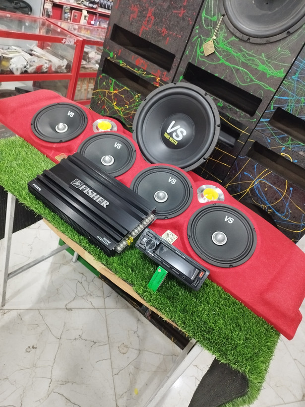 پک سیستم کامال: 4عدد میدرنج از برندVS. 2عدد سوپرتیوتر از برند اسکایلر.امپلی 4کانال.ساب اینفنیتی