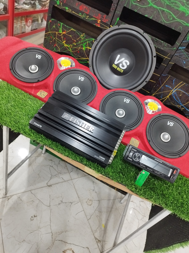 پک سیستم کامال4عدد میدرنج از برندVS. 2عدد سوپرتیوتر از برند اسکایلر.امپلی 4کانال.ساب اینفنیتی